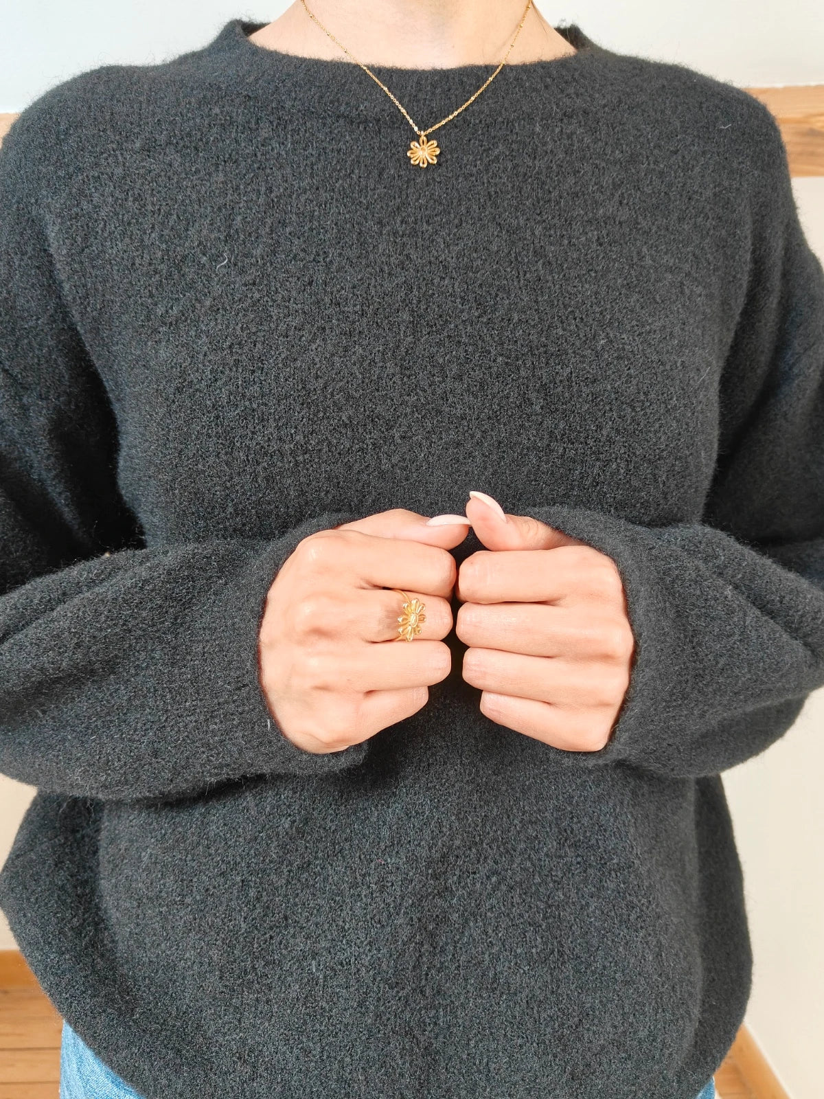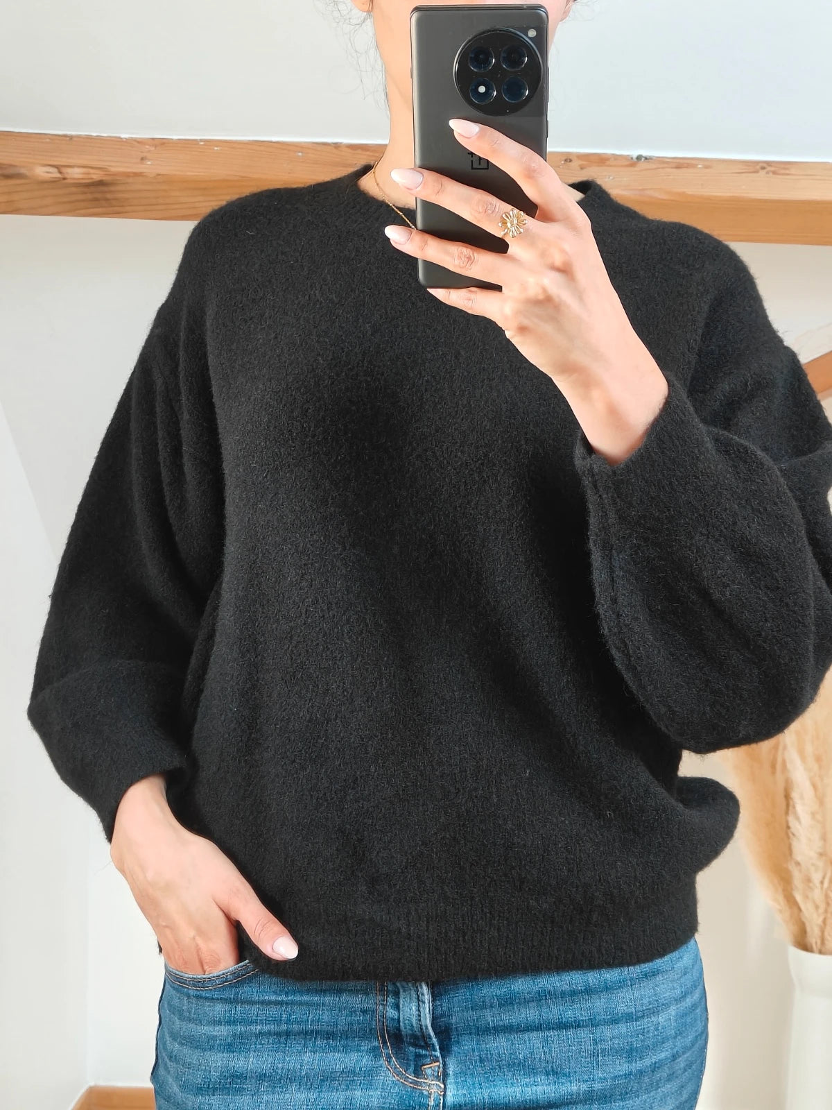 Pull : Composition :10% laine / 9% Nylon / 29% Acrylique / 24% polyester recyclé / 10% Alpaga / 14% polyester / 4% spandex. Convient d'un 36 à un 46