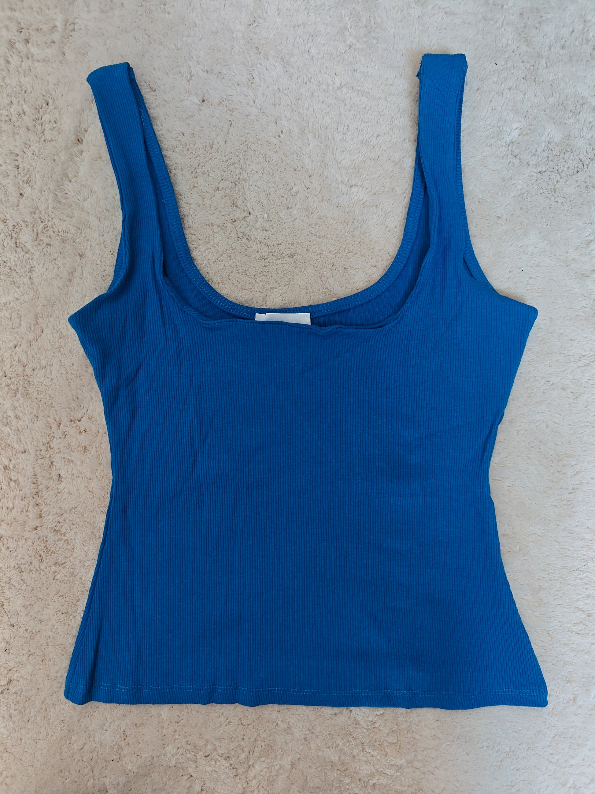 Crop top bleu tendance, à coupe courte et ajustée, parfait pour un look décontracté ou estival. Confortable et stylé, il se porte facilement avec un jean taille haute ou une jupe.