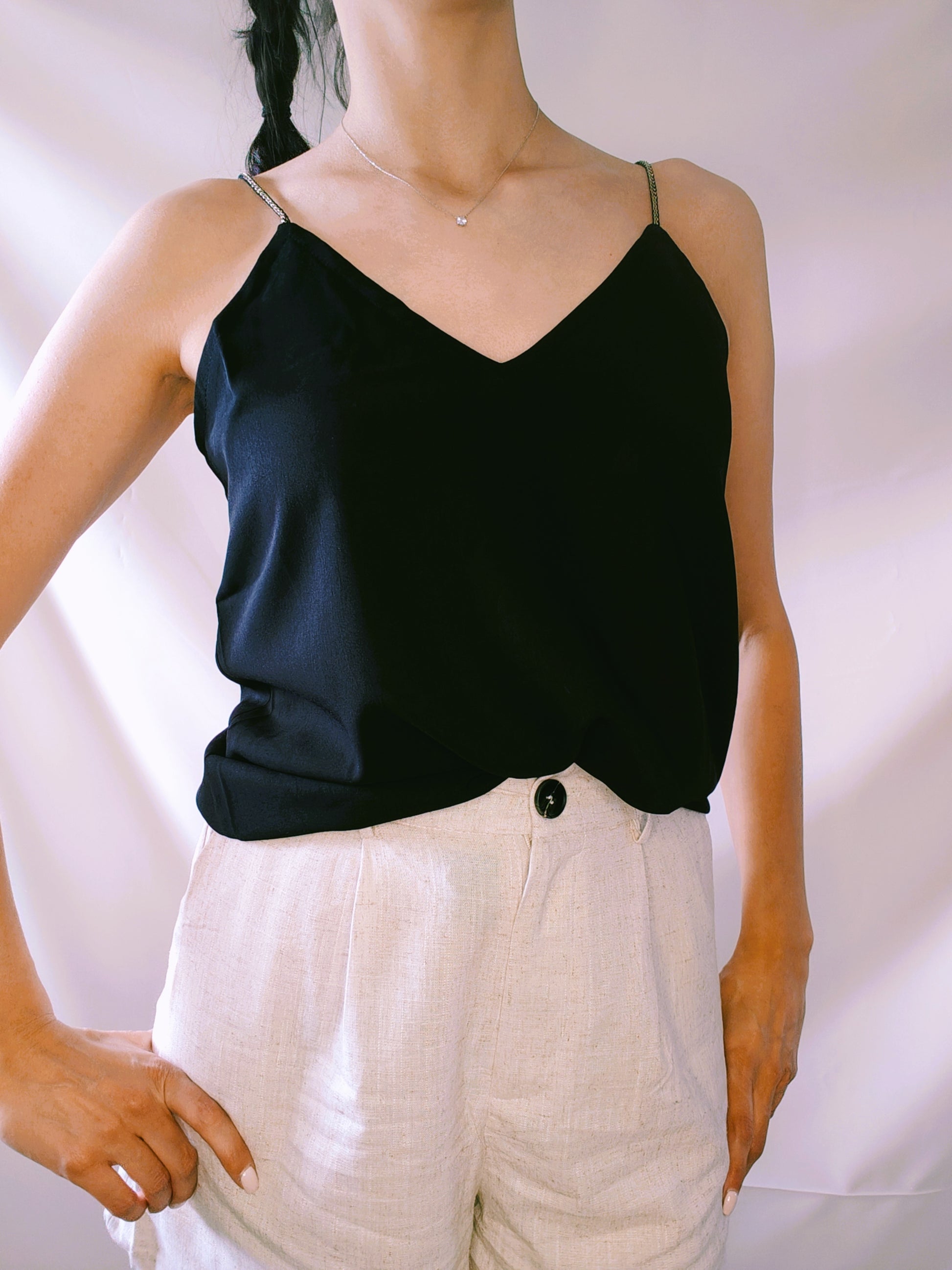 Élégant et facile à vivre, ce petit débardeur noir est la pièce incontournable à avoir dans sa garde-robe. Sa coupe et sa teinte profonde en font un basique versatile, à porter aussi bien en journée qu’en soirée. Un essentiel qui traverse les saisons avec style.