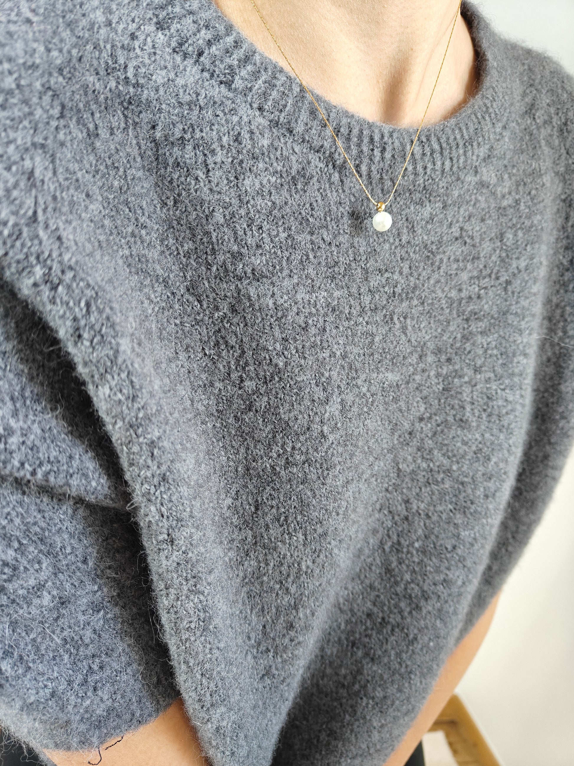 Pull en alpaga doux et chaud, au toucher luxueux. Maille fine et légère pour un confort exceptionnel. Coupe intemporelle, parfaite pour affronter les journées fraîches avec élégance.