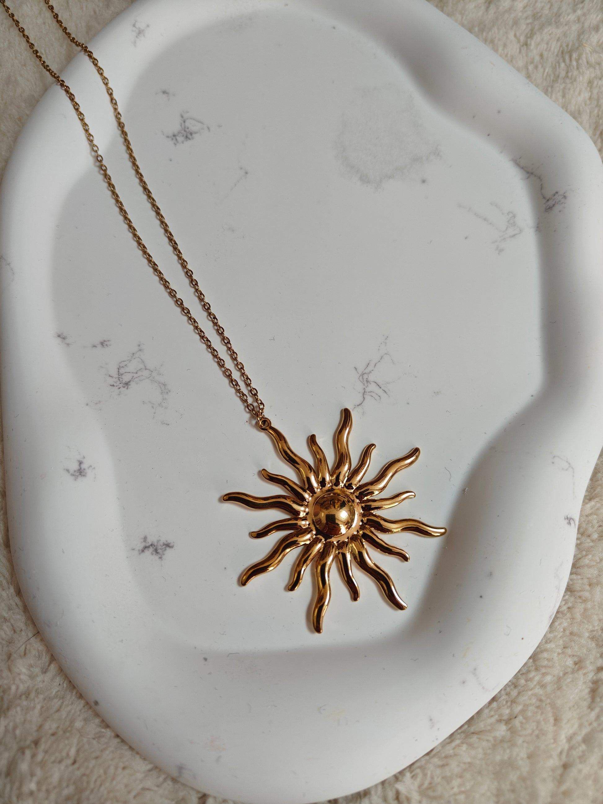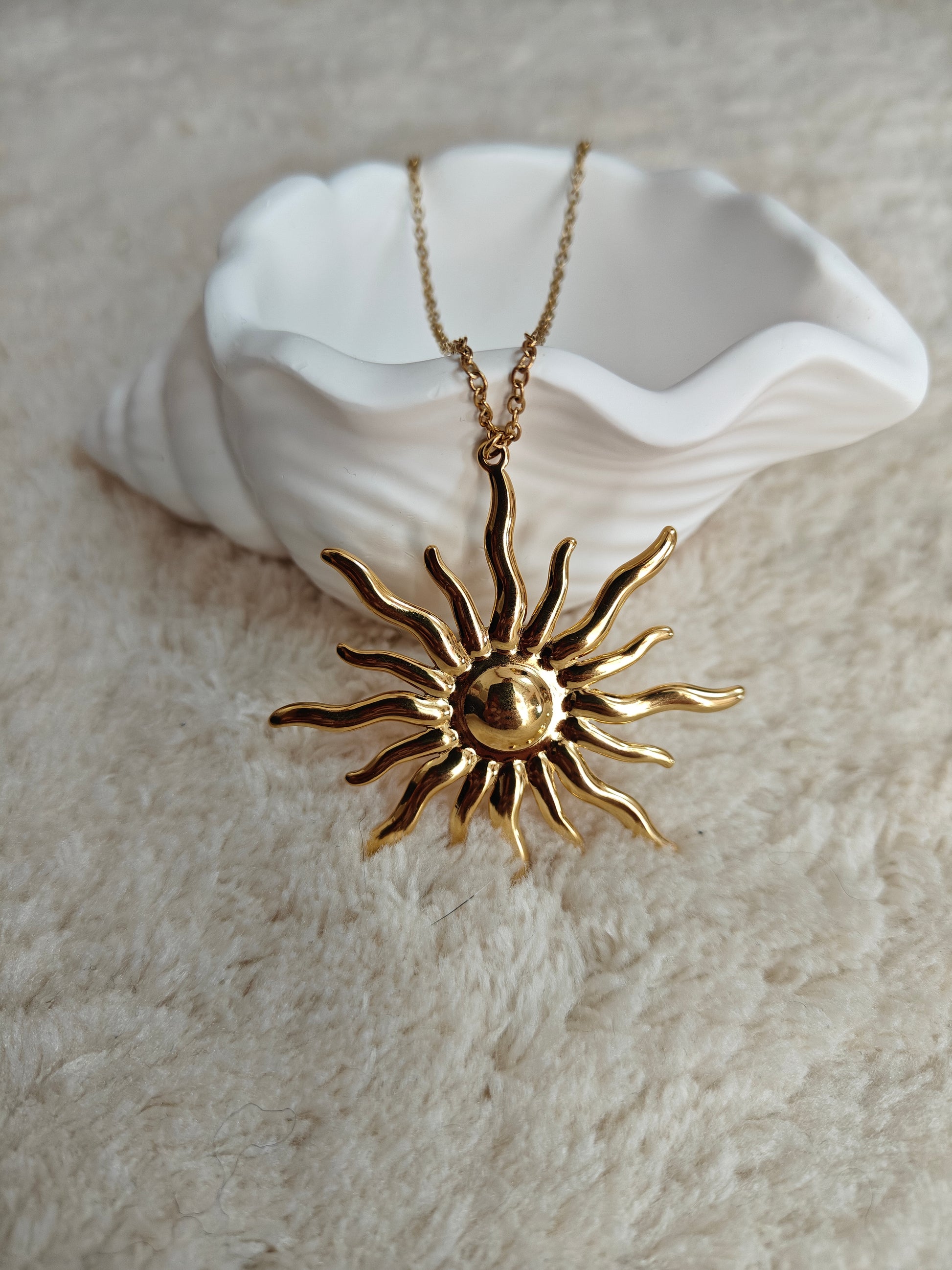 Sa chaîne longue et fine en fait un bijou parfait à porter seul pour un effet solaire minimaliste, ou à superposer pour un style bohème chic. Un accessoire rayonnant, à la fois moderne et intemporel.